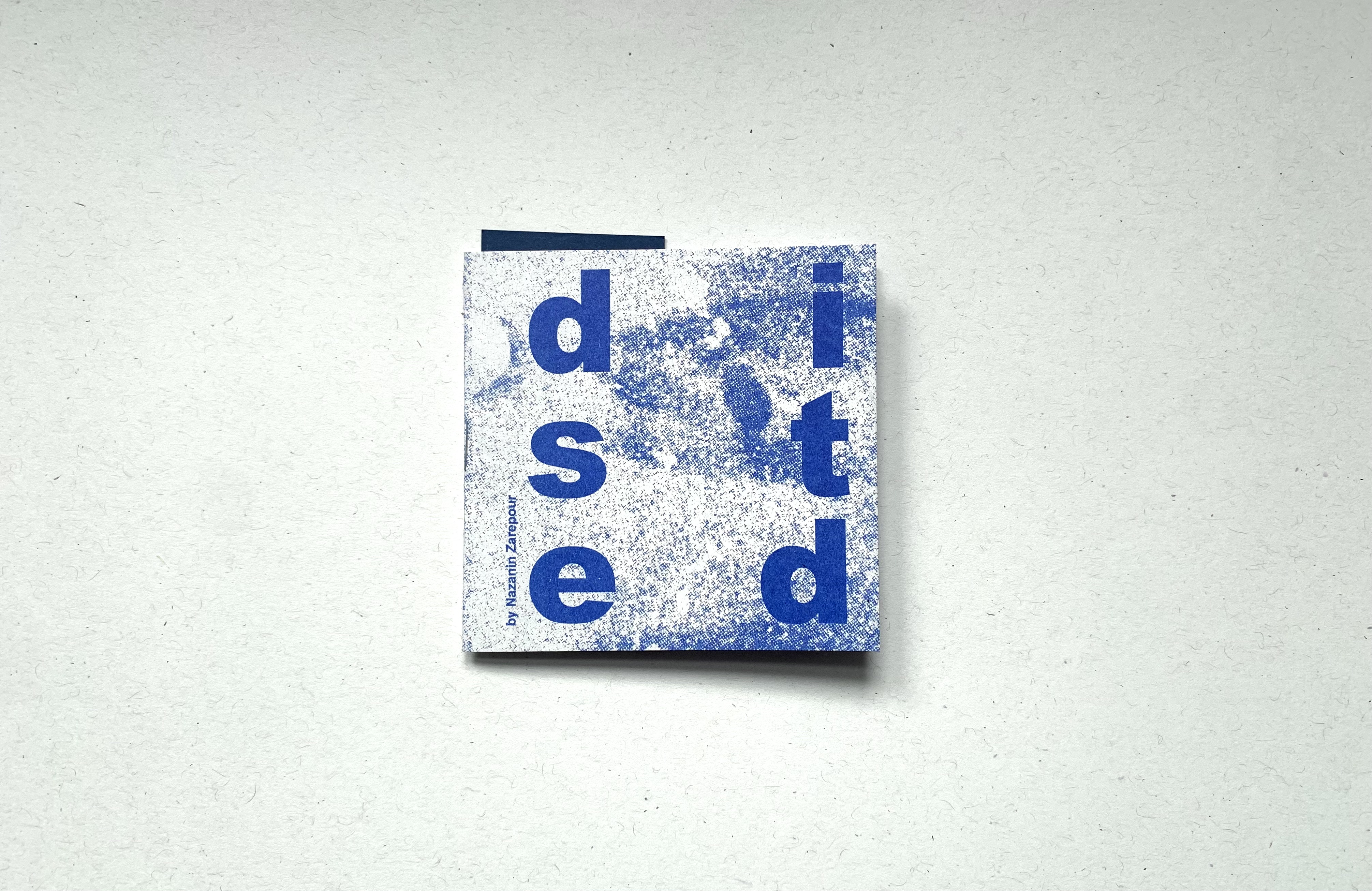 Disted is a long-form poem/zine exploring the grammar of missing, featuring 35mm photographs taken from Toronto Island in the winter of 2023. This artist book was written, designed, riso printed, and bound by Nazanin Zarepour at the print studios of Cornell University. Each magazine has its own unique flaws. Available at Art Metropole.